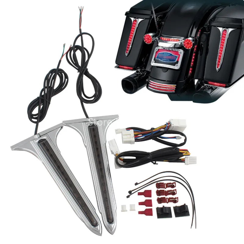 Hot Sale 2 Pcs Chrome LED Smoke Lens Rear Saddlebag Lights Fits For Harley Street Glides 06-13