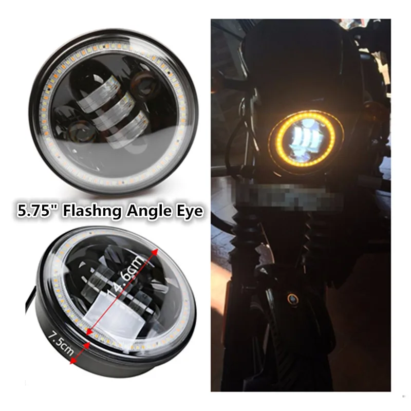 New Motorcycle Accessories 5.75" Harley Led Headlight High/Low 5-3/4" with Angle Eyes Halo led moto