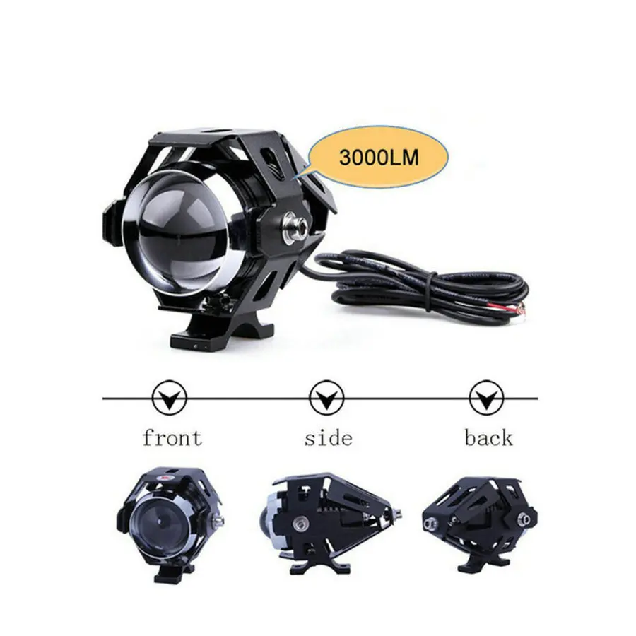 U5 Motorcycle Headlight Black Shell LED Fog Light Autobicycle Spot Lamp With Strobe Function For Bi
